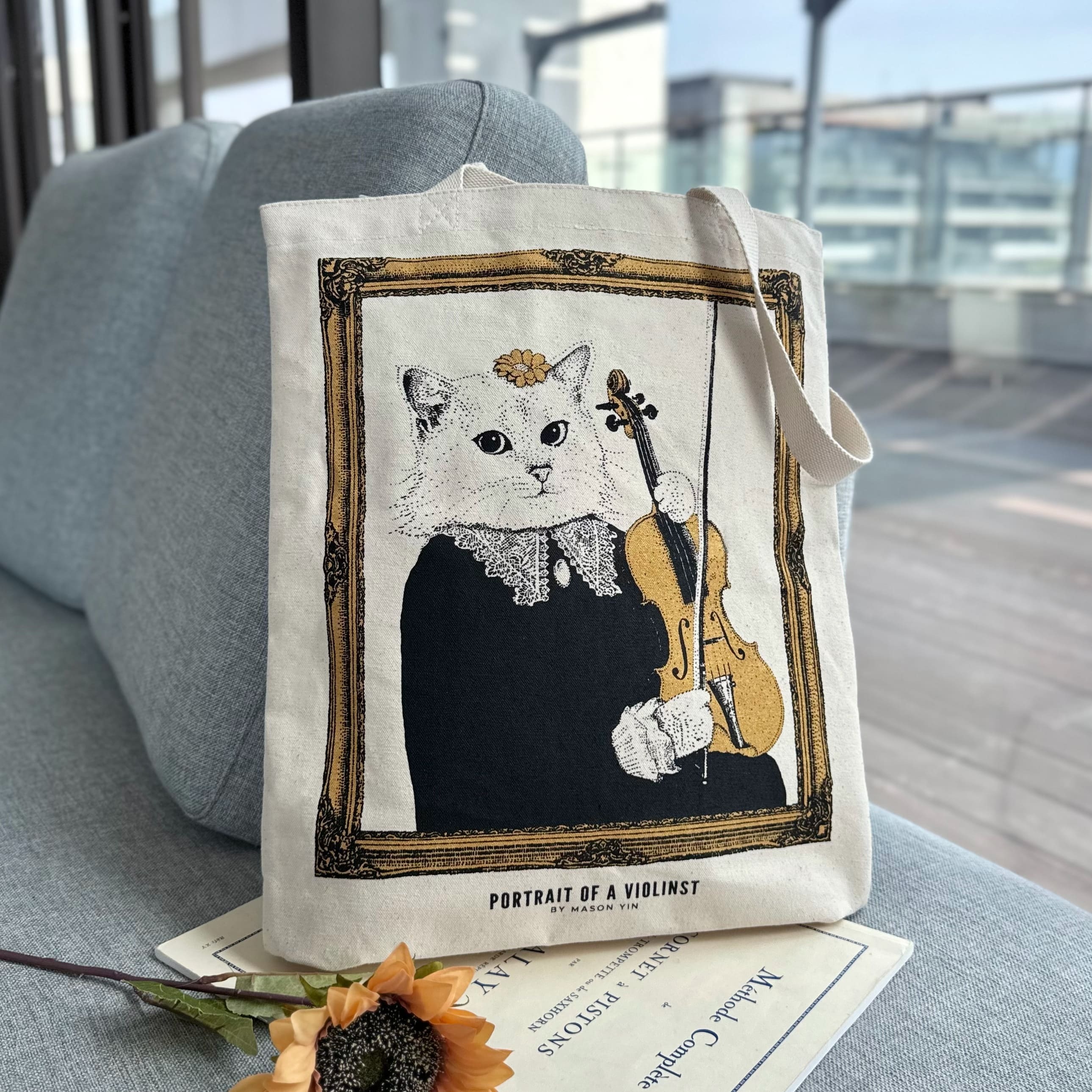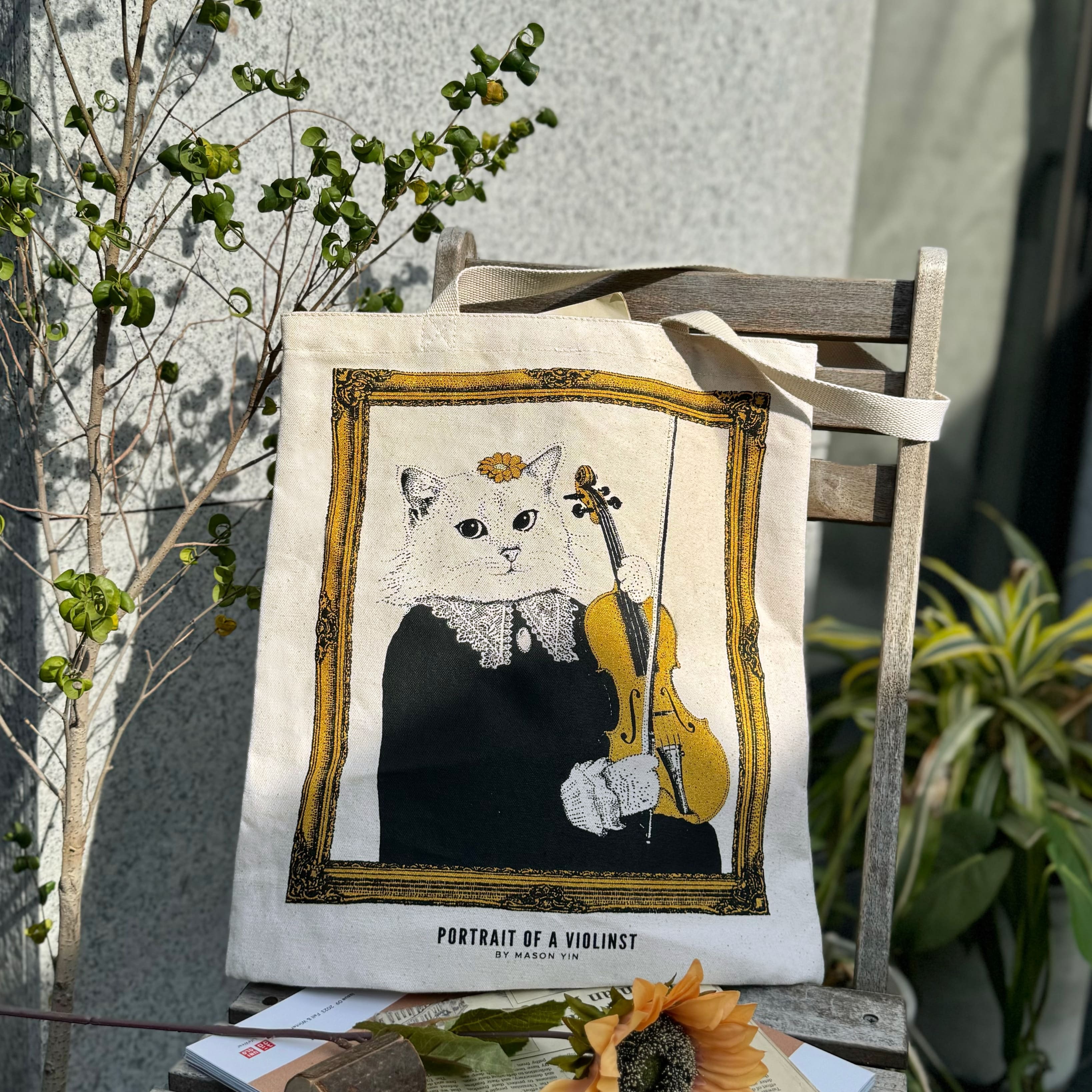 延續一貫的古典風格,將貓貓可愛俏皮的神韻及樂器的精美之處完美融合,打造出另一種可愛經典的古典音樂貓。高品質的縫製技術及特選環保材料,使帆布袋不僅耐用且獨特!
