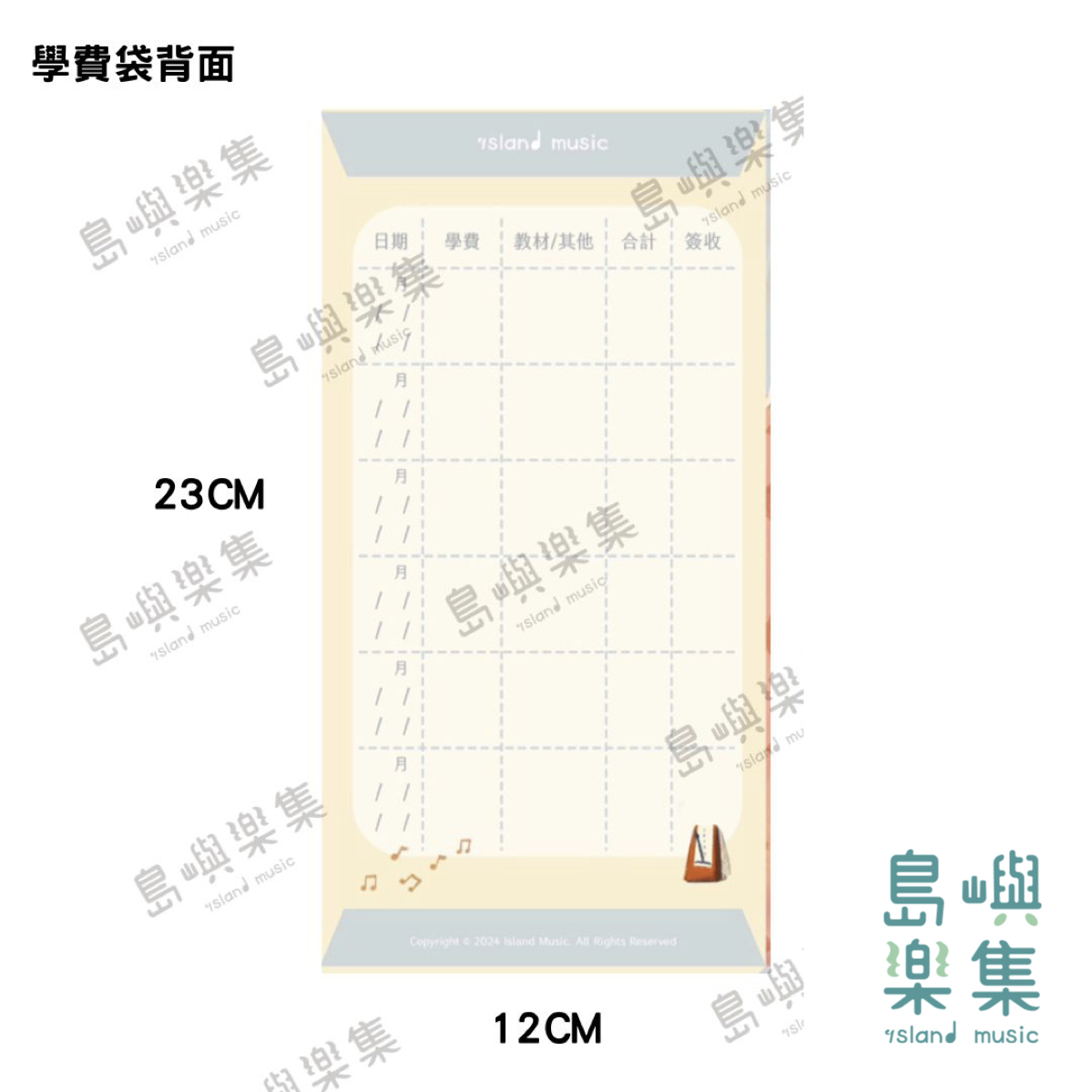因此,島嶼看到了大家的需要,在去年我們設計了聯絡簿、五線譜及學費袋。